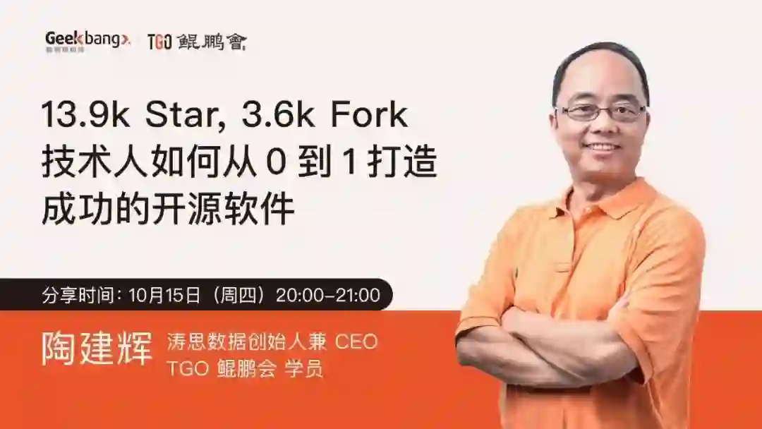 鲲鹏会的各位朋友,大家好!我是涛思数据创始人陶建辉,也是开源的软件 TDengine 的主要的贡献者,今天要分享怎么从 0~1 打造成功的开源软件。