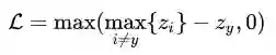 跟之前相比,多了一个限制词“最大的”,但其实我们的目标并没有改变,“目标分数比最大的非目标分数更大”实际上等价于“目标分数比所有非目标分数更大”。这样我们的损失函数就变成了: