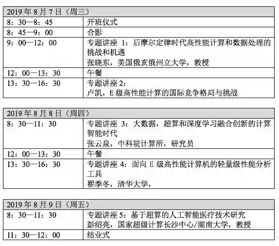 本期讲习班邀请到了本领域5位来自于海内外著名高校与科研机构的重量级专家学者做主题报告。他们将对超级计算与大数据、人工智能的基础算法、关键技术、核心应用及当前热点问题进行深入浅出的讲解,并对如何开展本领域前沿技术研究等进行指导,使参加者在了解学科热点、提高理论水平的同时,掌握最新技术趋势。