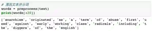 上面的函数实现了替换标点及删除低频词操作,返回分词后的文本。