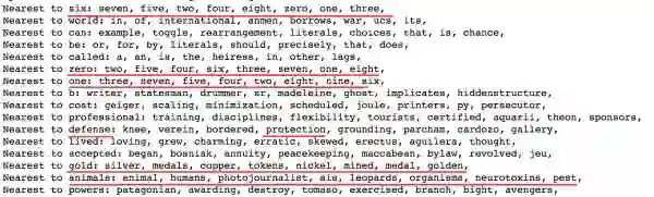在上面的步骤中,我们已经将模型的框架搭建出来,下面就让我们来训练训练一下模型。为了能够更加直观地观察训练每个阶段的情况。我们来挑选几个词,看看在训练过程中它们的相似词是怎么变化的。