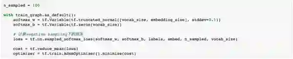 数据预处理结束后,就需要来构建我们的模型。在模型中为了加速训练并提高词向量的质量,我们采用负采样方式进行权重更新。