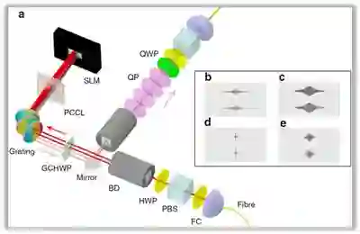李传锋研究组在光学系统中完成了这一任务。他们把单个光子的偏振作为量子比特,而光子的频率作为环境,构造出完全可控相位演化量子模拟器。研究组通过巧妙的光路设计,把光子的频率分布转化到空间分布,并把两种偏振的光转变成两束平行光输入到空间光调制器上,通过对空间光调制器的编程控制可以构造出光子的任意频率分布和相位分布,从而实现任意的相位消相干过程。