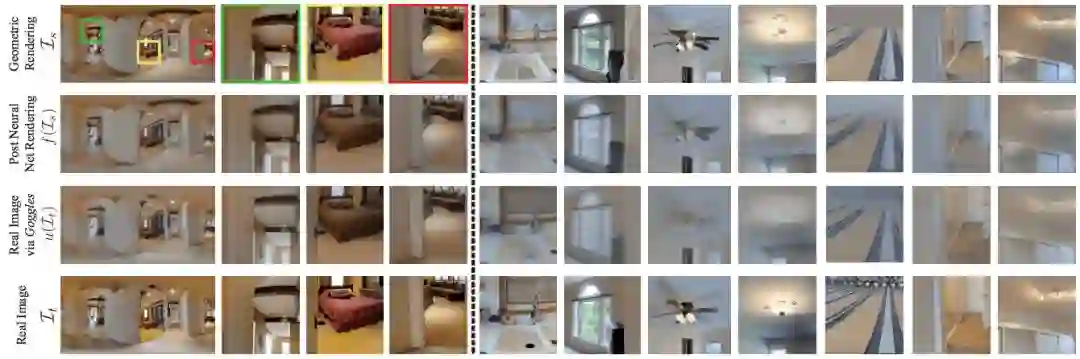 Gibson的主要目标是帮助在现实环境中训练的模型完成迁移,这一过程分为两步。首先,在现实环境中表现自己的语义复杂性,并根据扫描过的真是场景构造环境,而不是根据人工渲染的环境创建。之后,嵌入一个机制,解决Gibson的渲染和真实相机之间的差异。