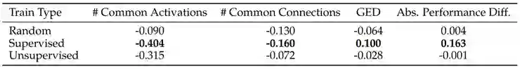 为了确认这种正则化是否真地让控制器嵌入提供架构之间有意义的相似性,我们将架构嵌入之间的 L2 距离与架构相似性的各种直观概念相关联,这些直观概念包括激活函数的个数,或者采样的 DAG 之间的公共连接等。