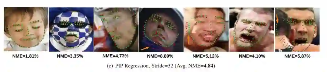 我们很容易理解到,PIP的收益,一部分来源于下采样特征图压缩了分辨率,使得一部分邻近点可以共享特征。随着下采样率的提升,分辨率会越来越小,分类任务的难度会降低,回归任务的难度在提升。在极端情况下,输入图片可以被下采样成一个像素,在这个情况下,分类任务退化成了一个0-1分类问题,彻底丧失了空间信息;回归头变成了标准Regression方法的形式,在整张图片尺度上预测关键点坐标。
