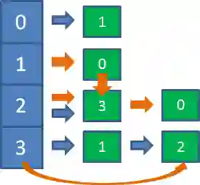 图中蓝色箭头指向某顶点可到达的相邻顶点,橙色箭头指向可到达某顶点的相邻顶点,看起来可能有些乱。