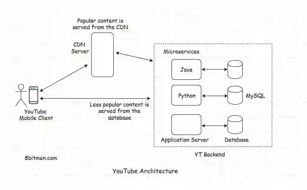 因此,视频被存储在硬盘中。关系、元数据、用户偏好、个人资料信息、账户设置、从存储中获取视频所需的相关数据等都存储在 MySQL 中。