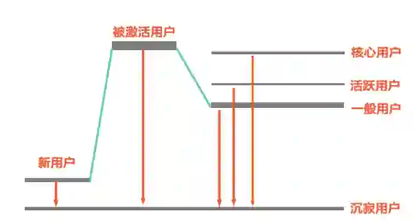 无论是哪一层的用户,都有可能流失掉,成为沉寂用户,即不再有返回产品的迹象。
