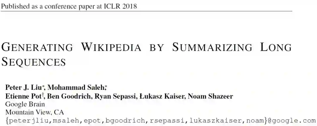 论文:Generating Wikipedia by Summarizing Long Sequences