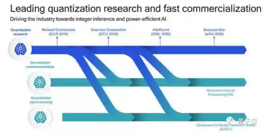从高通最新公布的技术路线图来看,模型量化一直是AI研究院这几年钻研的核心技术之一,目的就是给AI模型做个“瘦身”。