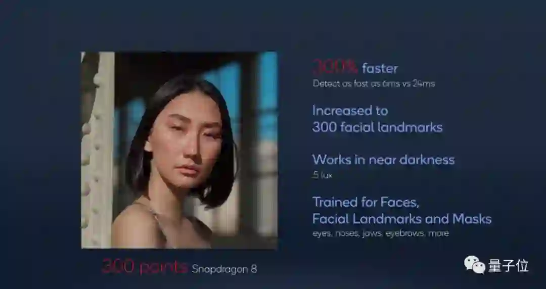 针对智能识别这个点,高通今年将面部特征识别点增加到了300个,能够捕捉到更为细微的表情变化。