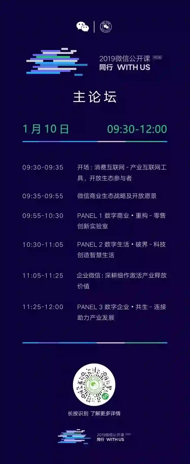 第二天干货依旧不打折扣。1月10日,数字商业、数字生活、数字企业三大主题圆桌环节将呈现微信商业生态的全貌。