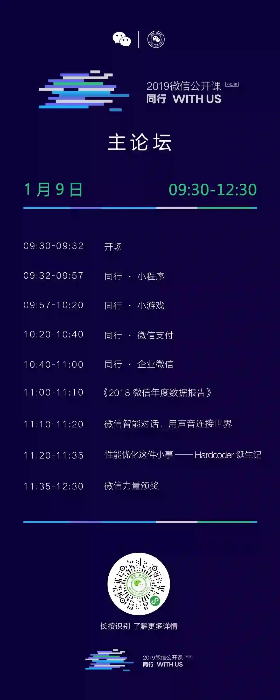 1月9日上午,主论坛将聚焦小程序、小游戏、微信支付以及企业微信等“重头戏”进行阐述和解读,还有2018微信数据报告、微信AI新发布等重磅内容相继亮相。