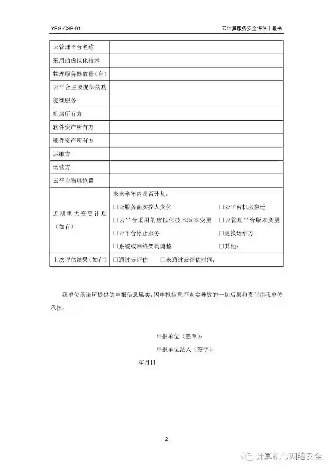 附件:云计算服务安全评估申报书