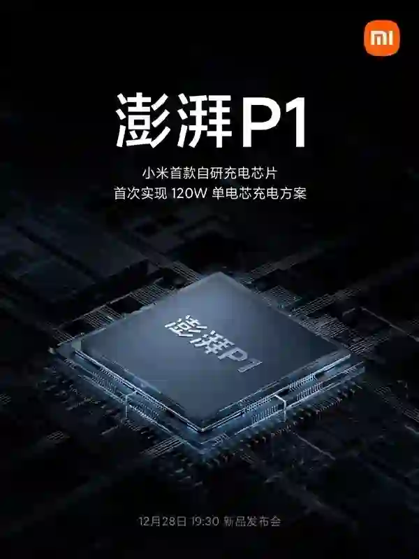 12 月 24 日下午,小米公布了新一代澎湃自研芯片,这是小米首款自研的充电芯片,被命名为“澎湃 P1”,将由下周登场的小米 12 Pro 首发搭载。