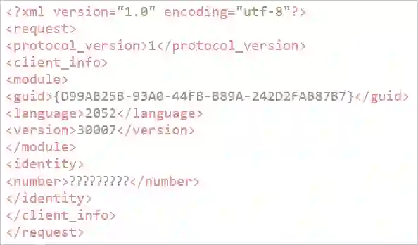http://updatecenter.qq.com/queryselfupdate(IP”61.129.7.17“,百度检索该IP是上海市深圳市腾讯计算机系统有限公司电信节点)服务器POST数据请求更新,POST的XML数据如下: