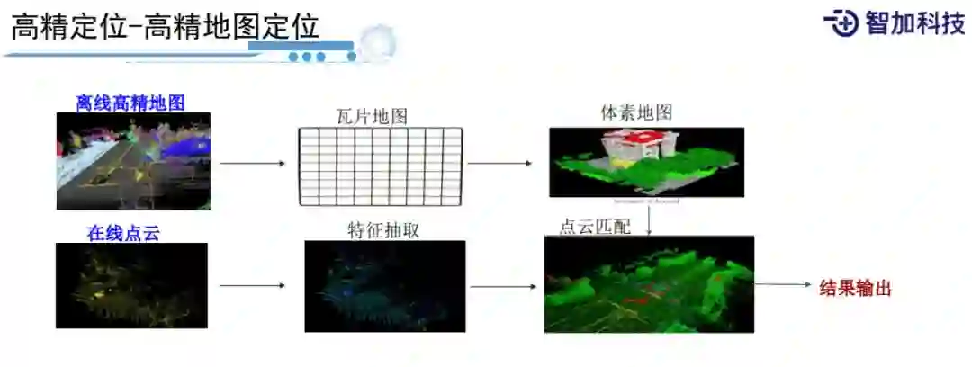 高精地图定位的原理如上图,对于离线地图,将其转变为瓦片地图,提取车辆所在位置周围的地图信息并进行体素化,转变为离散化的体素地图;对于车辆行驶过程中收集的在线点云数据,对其特征提取之后进行离散化。最后,通过对离线数据和在线数据的匹配,生成定位结果。