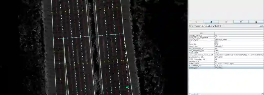最后,为了提高地图的实用性,需要进行人工验证,为地图增加车道线和道路分隔线等。