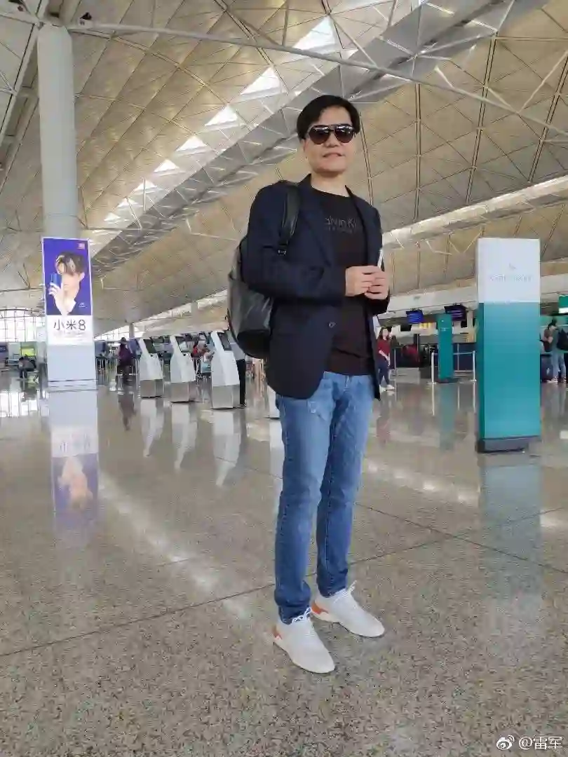 (雷军在微博晒出一张穿破洞裤的照片)