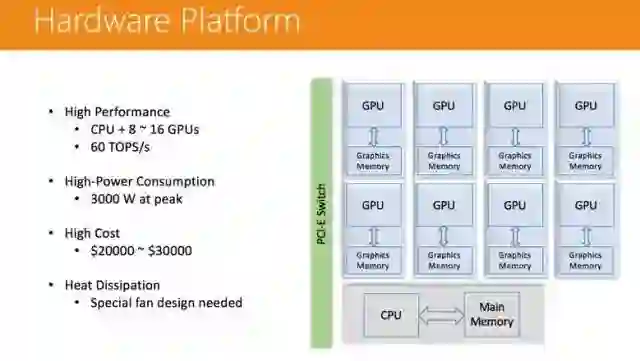 在计算层面,我们运用了 Apache Yarn 这个分布式系统管理器通过 Spark 把作业分发下去,每个 Spark 的节点都有多个容器(Container),容器上会跑一些 OpenCL 的 Kernel,OpenCL 可以跑在 GPU 上,也可以跑在 FPGA 上。这个平台的可扩展性非常强,模型训练所需的时间会随着 GPU 数量的增加而线性减少。