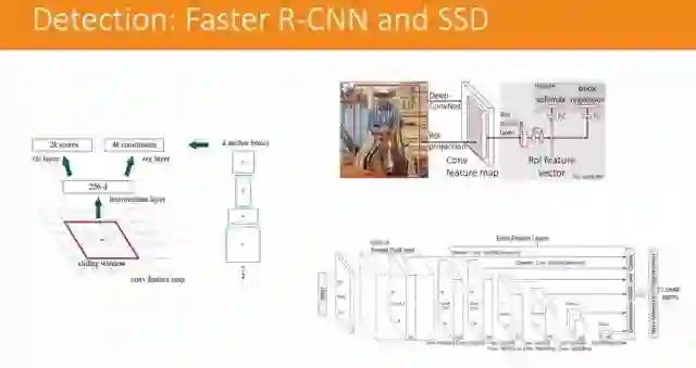 一个是 Faster R-CNN,它会将兴趣点框出来,然后再进行物体识别,找到是不是你想要识别的物体;另一个是更为快速的 SSD,也是将图中的物体识别出来。