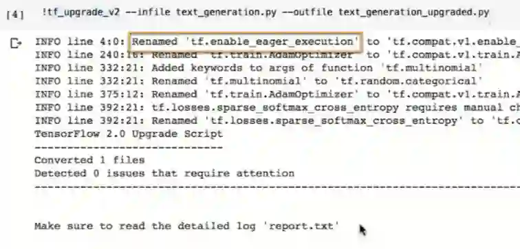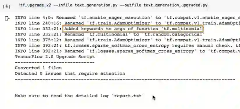 当你用pip你装TensorFlow 2.0是,tf_upgrade_v2就已经被自动安装了,它可以加速你将已有的TensorFlow 1.13脚本迁移到TensorFlow 2.0。