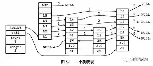Zset 是一个有序的链表结构,其底层的数据结构是跳跃表 skiplist,其结构如下: