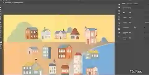 别生气,Adobe双手给你奉上了超级矢量图工具2D Plus,无论是将房子聚拢/分散、沿海岸线形状透视、还是加上高光阴影,鼠标就能P图: