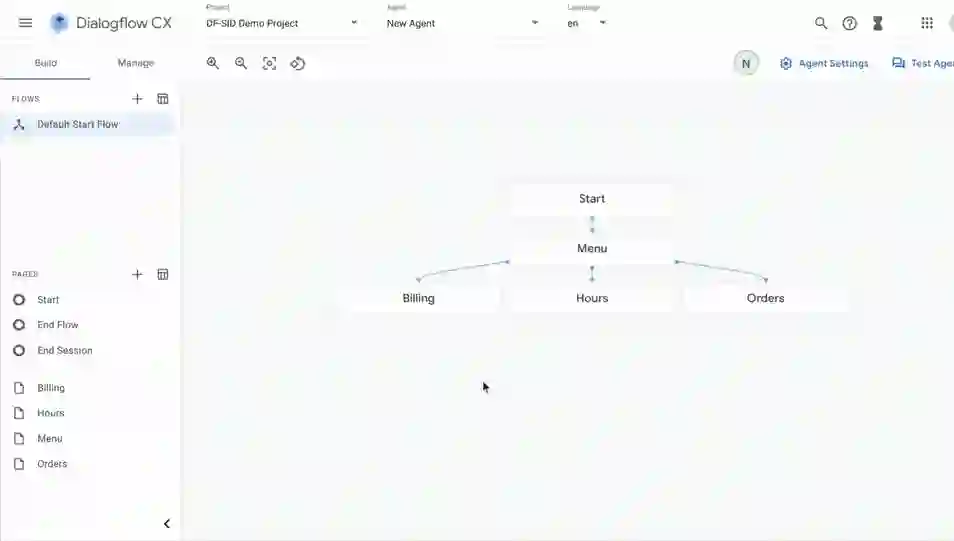 智能对话系统 Dialogflow CX 的使用界面