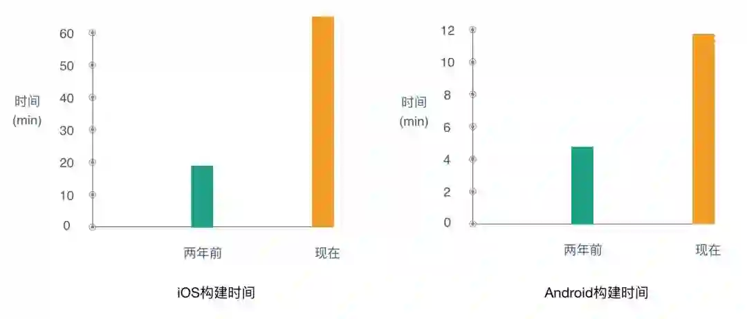 目前大众点评的iOS项目构建时间,从两年前的20分钟已经增长到现在的60分钟以上,Android项目也从5分钟增长到11分钟,移动项目构建时间的增长,已经严重影响了移动端开发集成的效率。而且随着业务的快速扩张,项目代码还在持续不断的增长。为了适应业务的高速发展,寻求行之有效的方法来加快移动项目的构建速度,已经变得刻不容缓。