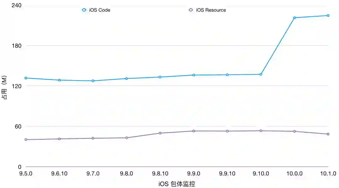 我们对包体总大小、可执行文件以及图片进行全方面的监控,包体变化的趋势一目了然,对于包体的异常变化我们可以第一时间感知。