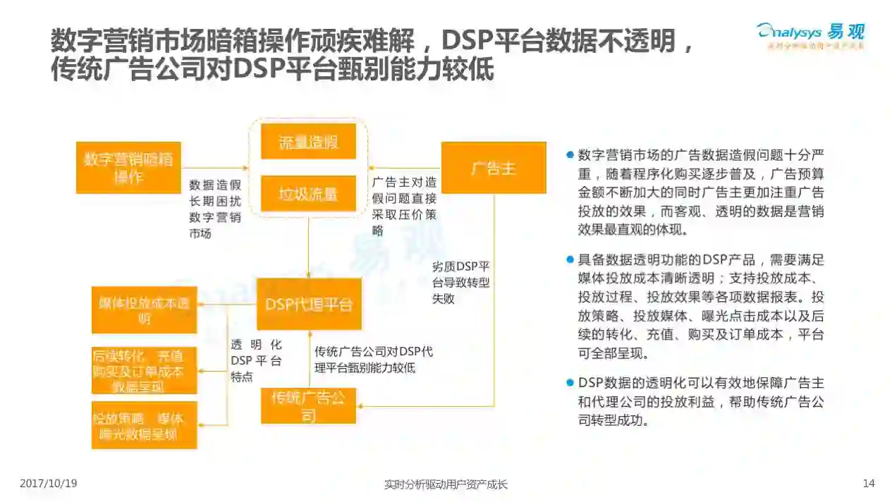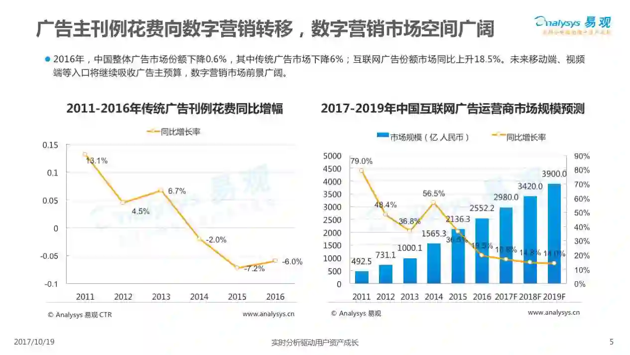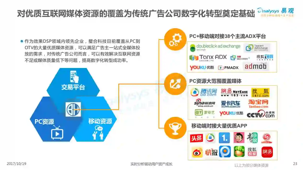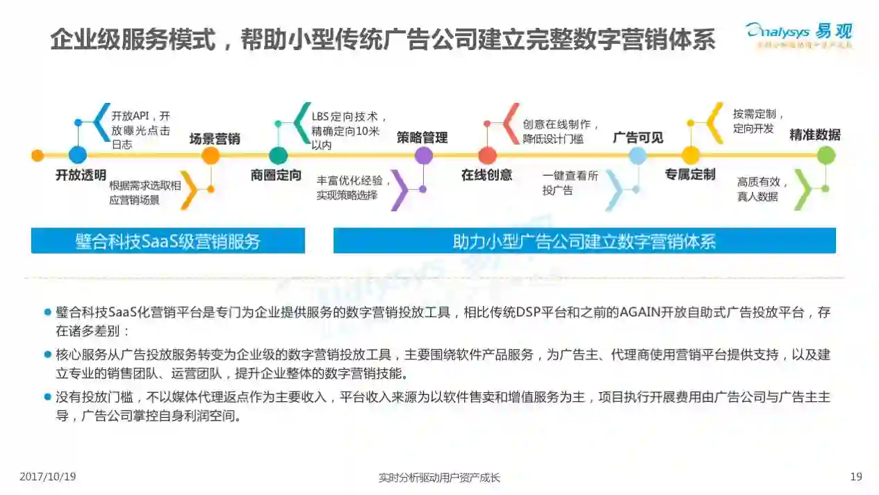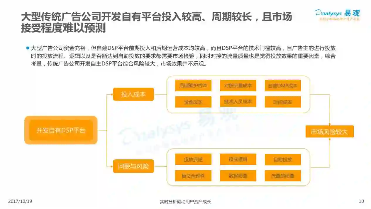 易观发布了《传统广告公司数字化转型白皮书2017》,分析认为在目前数字化高速发展的今天,传统广告公司需要加速拥抱程序化购买以实现数字化营销转型,分析对当前传统广告公司数字化转型现状和主要问题予以梳理,并以数字化转型服务商璧合科技为案例进行分析。