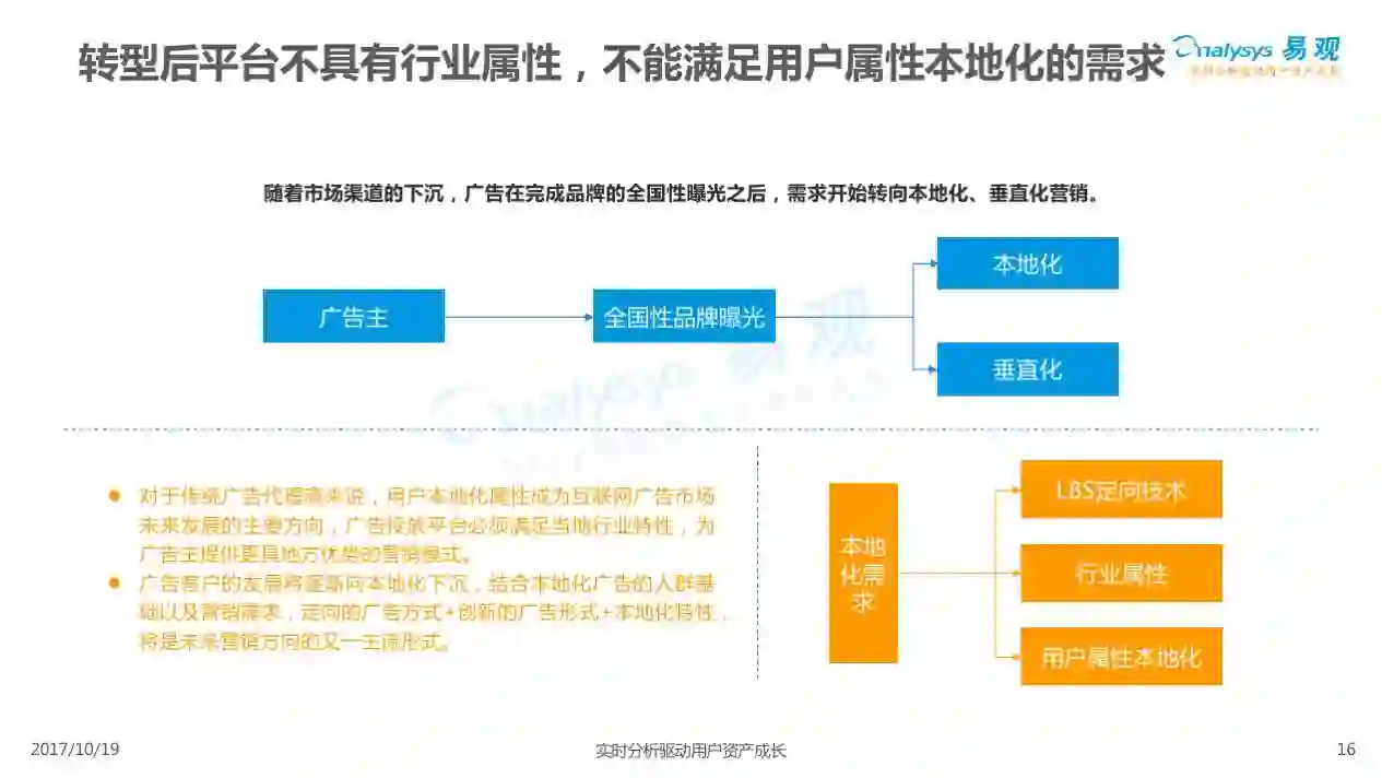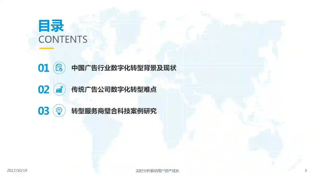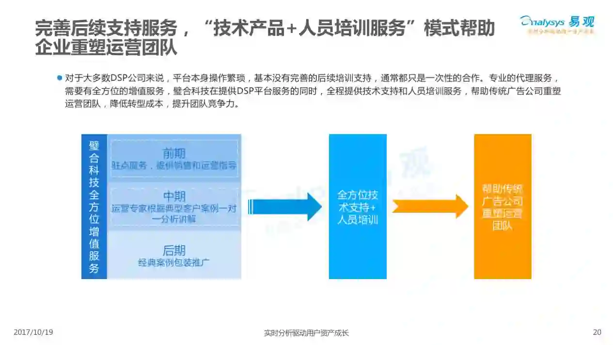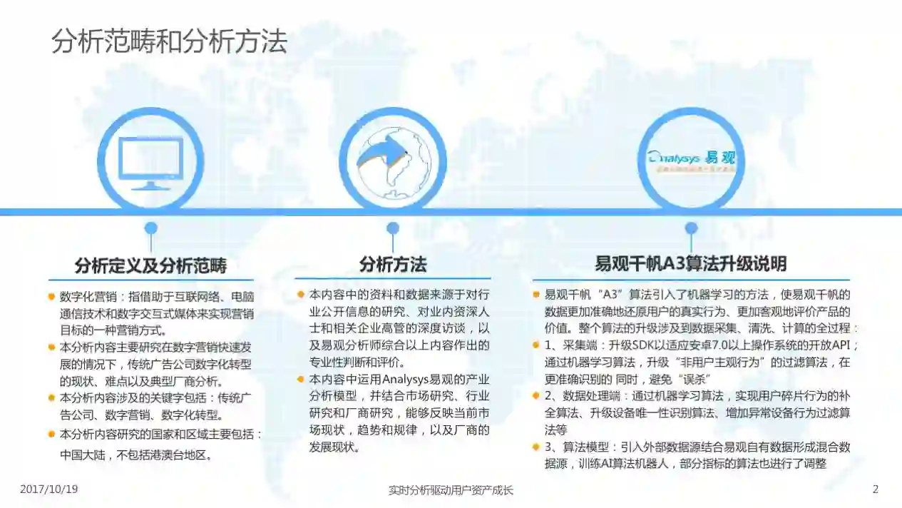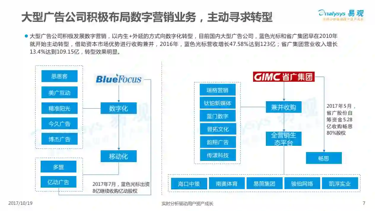 易观发布了《传统广告公司数字化转型白皮书2017》,分析认为在目前数字化高速发展的今天,传统广告公司需要加速拥抱程序化购买以实现数字化营销转型,分析对当前传统广告公司数字化转型现状和主要问题予以梳理,并以数字化转型服务商璧合科技为案例进行分析。