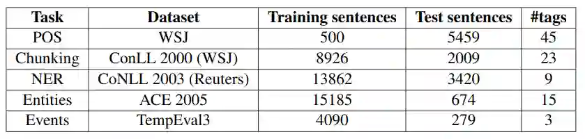先来看一下数据集,都是比较经典的序列标注数据集,第一列是任务类型: