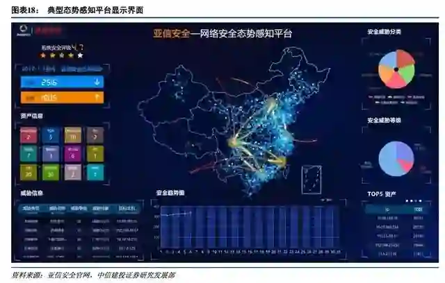 态势感知平台分为政府部门使用的监管平台和企业使用的实施监测预警平台,目前在公安部、网信办、金融、电信、能源等行业增长迅速。