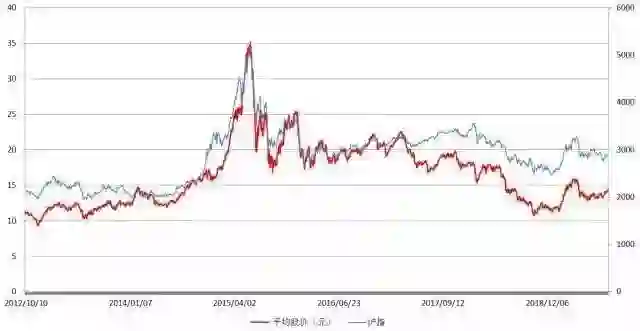 界面新闻对比了近八年来沪指与A股平均股价的变化情况: