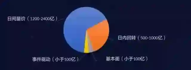 有数据显示,目前投入国内股票市场的量化资金预计在1800亿元-3600亿元之间,其中日间量价的规模大概在1200-2400亿元,占据了一半以上的份额,日内回转交易次之,规模在500亿-1000亿元之间,事件驱动和基本面量化则均在百亿元以下。