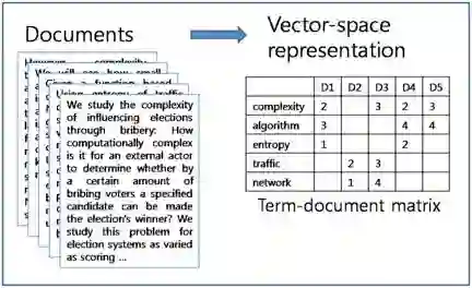 用矩阵表示数据集,矩阵的每一行表示一条推文,每一列表示从推文(已经经过分词和清理)中提取的特征(一元模型或二元模型)。每个单元格是 tf-idf 分数(也可以用更简单的值,但 tf-idf 比较通用且效果较好)。我们将该矩阵称为文档-词项矩阵。
