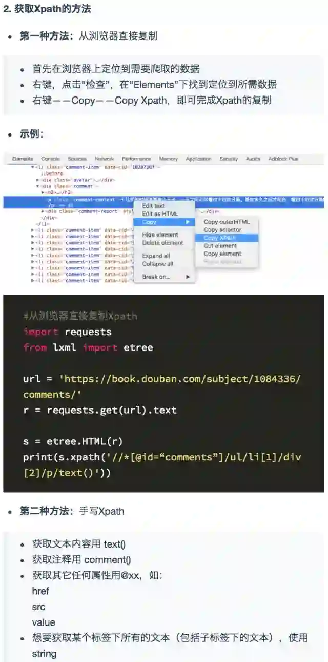 说点具体的,比如我们会直接用 lxml+Xpath取代 BeautifulSoup 来进行网页解析,减少你不必要的检查网页元素的操作,工具的安装都有详细教程及常见错误处理,多种工具都能完成的,我们会给你最简单的方法,这些看似细节,但可能是很多人都会踩的坑。