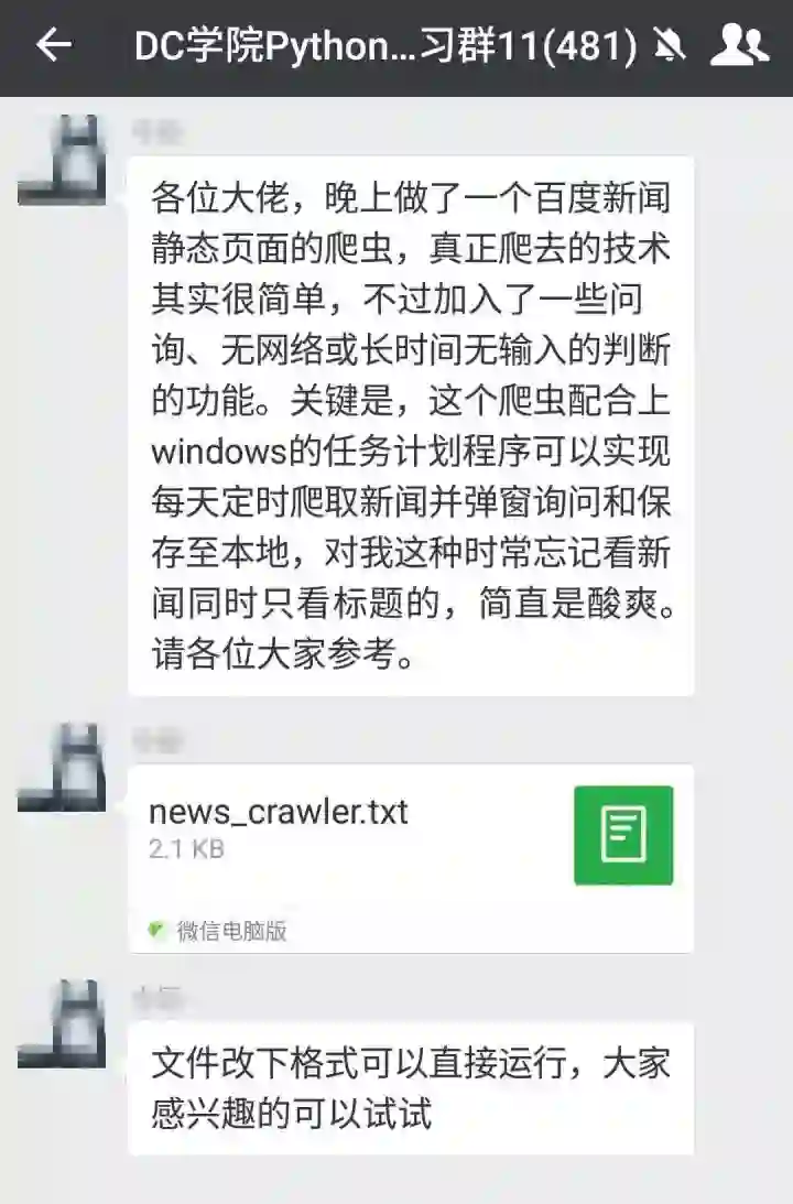 2. 在前面学习的同学中,很多已经能够写基础的分布式框架,有人爬取租房、电商商品、书籍、电影等数据进行了分析,有人做出了每天自动爬取新闻、天气的Demo,也有人爬到了大量的“妹子图”……
