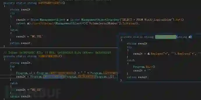 获取计算机用户名,磁盘虚拟号,经base64编码后,把编码后的数据去除“=”“+”生成受害者唯一id