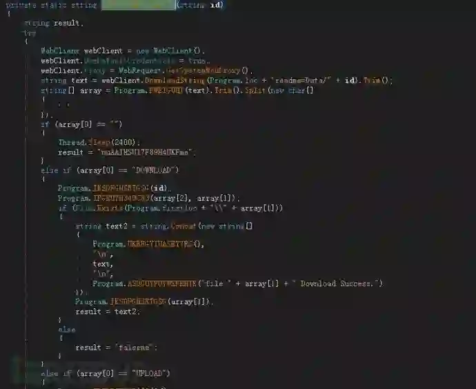 该可执行文件是一个c#后门,后续主要功能已包括,所以主要分析该文件
