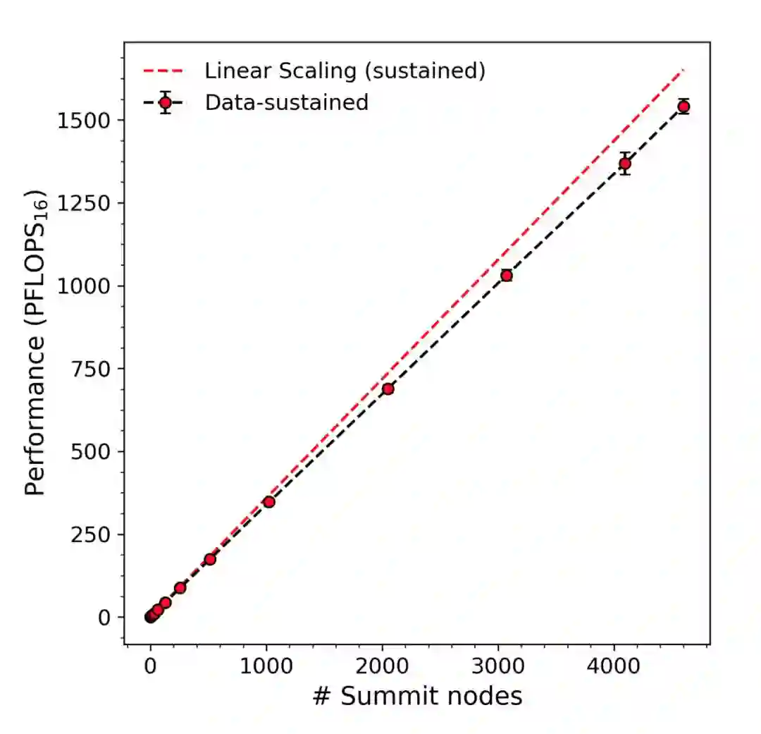 分布式计算确实需要在很多 GPU 上训练,但你见过在排名第一的超算上训练深度模型,在 2.76 万块 V100 GPU 训练模型的方法吗?重要的是,通过新的通信策略,这么多 GPU 还能实现近线性的加速比,橡树岭国家实验室和英伟达等机构的这项研究真的 Amazing。