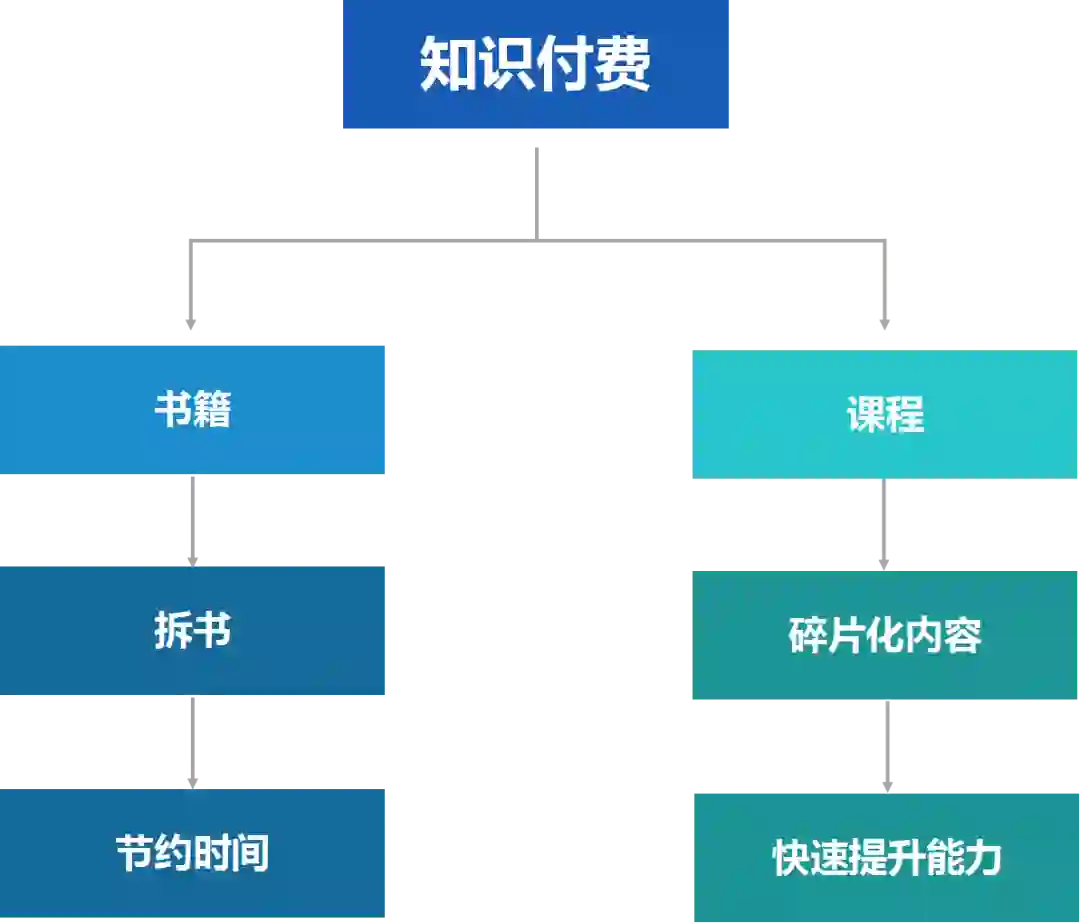 我们将目前的知识付费内容分为两大类:读书类及碎片化课程类。其中,快速阅读可以让用户节约获取知识的时间;而碎片化课程则让用户随时随地高效获取技能。