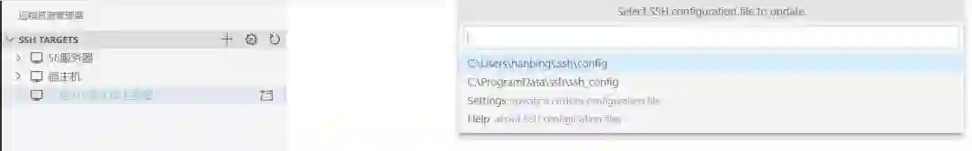 安装完成后,vscode左侧多出了一个菜单栏,我们点击配置按钮配置远程服务器的地址。