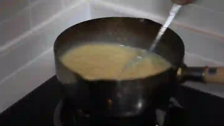 2. 倒入200g牛奶后再180度炸5分钟
