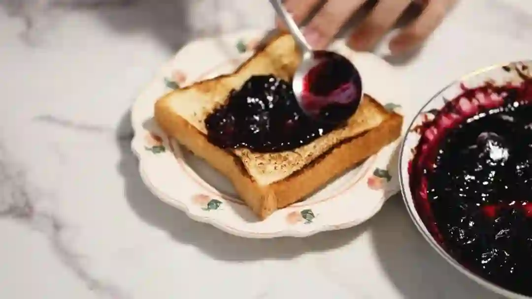说时迟那时快,蓝莓酱很快就做好了!李主任把蓝莓酱涂在烤面包上进行了试吃。李主任表示实验大成功!蓝莓酱的味道非常滴NICE,酸甜适中,没有因为过于甜而遮盖了蓝莓本身的味道。