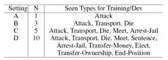 1. 在ACE数据集上进行实验,实验中可见类设置如下,N表示可见类的数量: