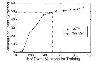 目前大多数的事件抽取是基于已有的手动标记样本进行训练。常见的数据集ACE,总共有8个大类,33个小类,对每个类,有人为标记的训练语料。但是对于没有样本的新事件类型,用上述语料训练的模型会显得无力。对此,一是可以用远程监督的方法标记训练样本,二是用迁移学习方法。本文基于第二点的,提出在事件抽取任务中用零样本迁移学习方法:将event mention 和event ontology联合映射到共享的语义空间上,拉近两者在语义空间上的距离。